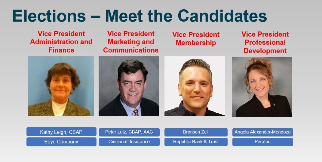 As noted on the Meet the Candidates, our members in the Northern Kentucky, Cincinnati, Southwest Ohio area will be electing an Executive Director for the Northern Kentucky/Cincinnati Branch. These members will receive a second ballot to elect a candidate to that position. This Executive Director position is also a Board of Directors position.