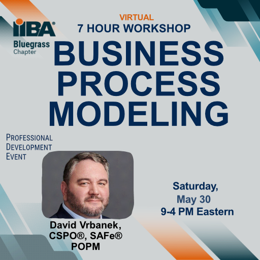 Bluegrass IIBA Chapter is hosting an all-day workshop on Saturday, May 30, 2026, during which participants will learn how to:
