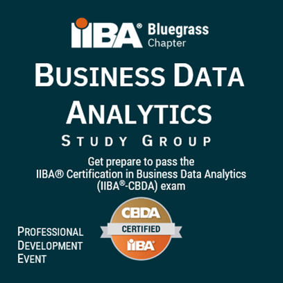 Bluegrass IIBA Chapter will host a virtual Business Data Analytics Study Group for those individuals interested in IIBA®-CBDA certification or learning the IIBA® Guide to Business Data Analytics to elevate their career.