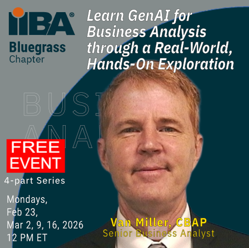Bluegrass IIBA Chapter is hosting an all-day workshop on Saturday, February 21, 2026, during which participants will learn how to: