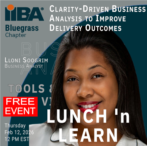 Join the Bluegrass IIBA Chapter for an powerful lunch hour designed to elevate your business analysis practice through clarity, structure, and strategic alignment! This practical, interactive session introduces a clarity-driven technique for defining roles, streamlining processes, and creating predictable delivery outcomes.