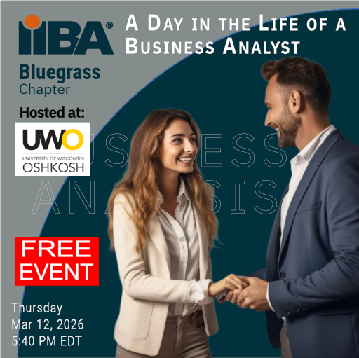 Join the Bluegrass IIBA Chapter, Wisconsin IIBA Chapter, and the University of Wisconsin-Oshkosh (UWO) for an engaging panel discussion that pulls back the curtain on one of today's most dynamic and in-demand careers. Whether you're a UWO student exploring career paths or a professional considering a transition into business analysis, this event offers invaluable insights from practitioners who live it every day.