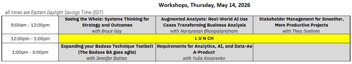 Track 4: Learn by Doing! (Interactive Skills Lab). Roll up your sleeves and practice real BA techniques through hands-on exercises and interactive activities. Every session includes audience participation where you'll apply what you learn in real-time.